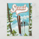 Seoul South Korea ski travel poster in a beautiful retro style.