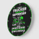 This bold clock is for the September-born trucker who doesn't hold back! It features a vibrant green truck and the candid statement: "I AM A TRUCKER I WAS BORN IN SEPTEMBER I HAVE ANGER ISSUES AND A SERIOUS DISLIKE FOR STUPID PEOPLE." An unforgettable birthday gift for the direct and passionate truck driver in your life.