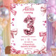 Sequins Pink Coquette Bow Three Girl Birthday Invitation, Bling Girl 3rd Birthday Invite, Editable Glitter Kids Birthday Party