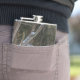 The flask itself is fine. It’s a cheap flask, obviously bought in bulk, however am prepared to overlook that. Given that it is a personalized item, I would have liked to have seen gift boxing instead of the generic packaging. Terrible printing, and/or quality. It’s a cheap, tacky vinyl. It is not cut straight and is also applied in a way that it is overhanging the bottom, causing the glue to catch on items and it will eventually roll and tear, damaging the wrap.