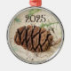 A simple image of a Sequoia cone and tiny green needle sprays on the sand creates this elegant, understated and woodsy ornament. Make this you. newest Christmas tree ornament or give it as a gift. It's sure to please.