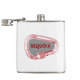 The flask itself is fine. It’s a cheap flask, obviously bought in bulk, however am prepared to overlook that. Given that it is a personalized item, I would have liked to have seen gift boxing instead of the generic packaging. Terrible printing, and/or quality. It’s a cheap, tacky vinyl. It is not cut straight and is also applied in a way that it is overhanging the bottom, causing the glue to catch on items and it will eventually roll and tear, damaging the wrap.