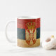 Coffee mug with the flag of Serbia in vintage distressed grunge old style design. This scratched design features the Serbian flag in retro vintage style. This design is a great way to show you are proud to be Serbian or to give as a gift to any Serb.
