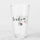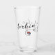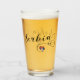 Drinking glass with stylish scripted design with the Serbian flag in a heart.