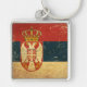 Metal keychain with the flag of Serbia in vintage distressed grunge old style design. This scratched design features the Serbian flag in retro vintage style. This design is a great way to show you are proud to be Serbian or to give as a gift to any Serb.