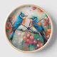 Serene Avian Sanctuary, A vibrant painting of two birds perched on a branch, their striking blue and orange plumage contrasting against a soft pastel background. Surrounded by blooming flowers in various shades of red, pink, and orange, the scene evokes a sense of peace and tranquillity. The painting is rendered in a blend of realism and impressionism, capturing the beauty and stillness of nature.
