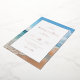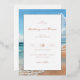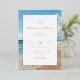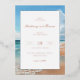 This wedding invitation features a serene beach scene with soft blues and warm beige tones, creating a tranquil and inviting atmosphere. The design showcases gentle waves under a clear sky, emphasizing natural beauty and relaxation. Elegant typography in a mix of serif and script fonts adds sophistication, while the layout centers around customizable text for personalization. Perfect for couples seeking a calm and romantic theme, this invitation sets the tone for a memorable celebration by the seaside.