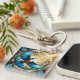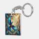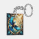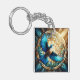 Serene Blue Bird Perched on Stained Glass Key Ring