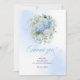 Boho wedding thank you card with blue hydrangea watercolor flowers and eucalyptus greenery, professionally printed by Zazzle on premium cardstock with crisp detail, rich colour, and a smooth elegant finish.