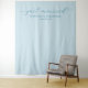 This wedding backdrop features a minimalist and elegant design with a soft pastel blue background, creating a serene and harmonious atmosphere. The phrase "just married" is elegantly written in flowing cursive script at the top, while clean sans-serif typography highlights the names below. The overall style is contemporary with classic charm, utilising negative space to emphasize clarity and sophistication. Perfect for celebrating your special day, this design conveys tranquillity and joy through its understated elegance.