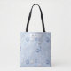 Carry your belongings in sophisticated winter style. This versatile tote bag displays a clean, elegant pattern of intricate blue ornaments and detailed silver angels on a light blue, snowflake-adorned background. A stylish and serene accessory for everyday use throughout the cool season. Add your name or message for a custom touch.