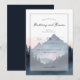 This elegant wedding invitation features a serene mountain landscape with soft pastel hues of pale pink and blue, creating a tranquil and romantic atmosphere. The design combines modern minimalism with classic elegance, using clean lines and ample negative space to highlight the key details. Customizable script and serif fonts add a personal touch while maintaining readability, making it perfect for couples seeking a sophisticated yet intimate celebration. The motifs of layered mountains and pine trees evoke a connection to nature, ideal for an outdoor or rustic-themed wedding.