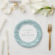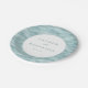 This elegant wedding plate features a serene oceanic motif with wavy, horizontal lines in soft blue-green shades that create a sense of calm and fluidity. The central white circle highlights customizable text in a classic serif font, offering a timeless touch perfect for personalizing your special day. Ideal for weddings or romantic celebrations, the design combines modern aesthetics with an inviting, sophisticated mood, making it a beautiful addition to any event table setting.