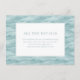 This wedding enclosure card features a serene aquatic theme with wavy, horizontal lines in soft blue-green shades that evoke the tranquillity of water. The central white square provides a clean space for text, framed by a thin black border, and includes customisable placeholder text in a modern sans-serif font. The design combines a minimalist aesthetic with an elegant touch, perfect for conveying important details while maintaining a sophisticated and calming mood. Ideal for weddings, this card is designed to guide guests to additional information seamlessly.