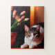 This beautifully crafted puzzle features a serene scene of a cat lounging beside a vase of tulips. The intricate details capture the cat's calm demeanour and the delicate beauty of the tulips, making it a perfect piece for cat lovers and puzzle enthusiasts alike. The vibrant colours and high-quality print ensure a delightful and engaging puzzle experience.