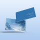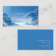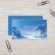 Define your brand with serene tranquility and ethereal elegance using this captivating business card. The design features a stunning Chinoiserie landscape rendered in cool, icy blues, creating an atmosphere of majestic solitude. The background is dominated by a vast, clear sky blue that meets hazy mountains and a low, misty plain. Prominent stylized blue pine trees and flowering branches frame the scene, accented by delicate white and pale gold blossoms that suggest frost and luxury. A crisp metallic gold rectangular frame anchors the central negative space, providing a sharp, elegant contrast to the soft, distant scenery. This artwork beautifully captures the refined beauty of a stylized, frozen garden, resulting in a unique and sophisticated brand statement that emphasizes peace and high-end design. This business card is ideally suited for a high-end travel agency promoting Asian-inspired scenic retreats, a luxury spa or wellness brand emphasizing tranquility and cool tones, or a fine art print seller focused on serene, atmospheric works. It would also perfectly suit a boutique candle maker whose products evoke crisp winter scents, or a modern landscape architect specializing in stylized garden designs. The card's captivating blend of misty scenery and elegant blue florals ensures it is versatile for any sophisticated announcement, a refined gift enclosure, or an elegant invitation.