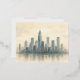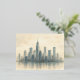 Serene Cityscape Reflection Print, Modern Skyline Foil Holiday Postcard