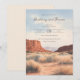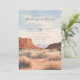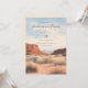 This wedding invitation features a serene desert landscape with warm earth tones of sandy beige, light brown, and muted reds, creating an inviting atmosphere. The design uses a digital illustration technique that gives it a soft, blended texture, enhancing the tranquil mood. Elegant cursive and clean serif typography is centrally aligned against the sky, while motifs of rocky formations and tufts of grass add organic charm. The overall style blends rustic and modern elements, evoking feelings of warmth and serenity, perfect for celebrating a special occasion.