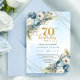 Serene dusty blue watercolor florals 70th birthday invitation