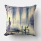 Serene Fantasy Lake with Willow and Heron Cushion
