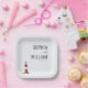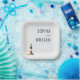 This wedding plate features a minimalist design with a clean white background, showcasing the names "SOPHIA and WILLIAM" in bold sans-serif typography paired with elegant cursive for "and." A charming lighthouse illustration adds a nautical touch to the composition. The color palette includes soft grays, vibrant reds, whites, and muted greens, creating a serene and sophisticated mood perfect for celebrating your special day.