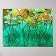 From an original watercolor painting of a pond with lilypads. Serene and green calming art. Fine art painting with modern green colors.