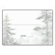 This wedding place card features a serene, misty forest scene with tall pine trees framing the design. The soft, muted colour palette of greys and whites creates an ethereal atmosphere, while the minimalist watercolor style enhances the tranquil mood. Clean, sans-serif typography provides customisable placeholders for table assignments, ensuring a harmonious blend of nature and elegance. Perfect for adding a touch of calm sophistication to your wedding decor.