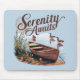 Serene Lake Boat with Geese and Wildflowers Mouse Pad