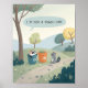 A serene landscape with a humorous twist with animals wearing tiny recycling bins or trees with speech bubbles saying “I’m not a trash can.”