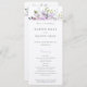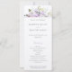 This elegant wedding program card is adorned with a tranquil arrangement of lilac flowers and greenery at the top, evoking the serene beauty of a spring garden. The blooms range from the softest shades of lavender to rich purples, harmoniously paired with olive and sage green leaves. Set against a crisp white background, the program outlines the ceremonial proceedings in graceful typography, with a subtle purple accent that echoes the florals. This card is a beautiful guide for guests, encapsulating the essence of the couple's special day with a note of heartfelt thanks at the bottom.
