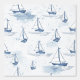 Watercolor pattern in soft navy blue white tones featuring sailboats, most calming and tranquil design for for coastal decor in the kid's room, bedroom, bathroom, beach house, holiday home..