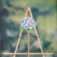 This elegant wedding sign features a centered vertical layout with ample negative space, highlighting a beautifully illustrated hydrangea flower cluster in soft pastel hues of blue, pink, and white. The design employs a digital painting technique, creating a realistic yet stylized representation that exudes serenity and sophistication. The typography is classic and understated, using serif fonts to convey the welcoming message and customizable details, making it perfect for setting a formal yet approachable tone at any wedding event.
