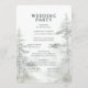 This wedding program features a serene, nature-inspired design with a vertical layout and soft pastel colours. The background is light beige, complemented by muted greens and greys in watercolor tree illustrations that create an ethereal atmosphere. Elegant typography highlights the event details, with customisable placeholders for names, dates, and locations, ensuring clarity and sophistication. The overall style is minimalist and tranquil, perfect for celebrating a formal wedding ceremony surrounded by natural beauty.