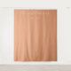 This wedding backdrop features a minimalist design with a warm peach-coloured background, creating an inviting and serene atmosphere. The layout is clean and balanced, showcasing elegant cursive typography for the main title paired with simple sans-serif font for additional details. Its modern and understated style emphasizes sophistication through simplicity, making it perfect for couples seeking a refined and personalised touch for their special day. The absence of complex patterns allows the focus to remain on the typographic elements, enhancing the overall mood of calmness and anticipation.