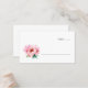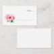 This wedding place card features a minimalist design with a single floral illustration of pink peonies in the bottom-left corner, set against a muted gray background. The color palette includes soft pinks and vibrant green foliage, creating an elegant and refined look. The simple sans-serif typography for "TABLE ____" complements the clean layout, while the asymmetrical composition adds a touch of sophistication. Perfect for adding a natural, romantic element to your wedding decor, this card exudes serenity and grace.