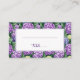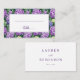 This elegant wedding place card features a lush floral design with hydrangea flowers in shades of purple, blue, and green, creating a vibrant border around a central white space. The botanical theme is rendered in a modern digital illustration style, offering a polished and refined look perfect for formal occasions. A cursive script font adds sophistication to the customizable "table" designation at the bottom, making it easy to personalize for your event. The serene and inviting mood evokes nature's tranquility, ideal for celebrating love and unity on your special day.
