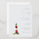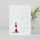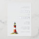 This elegant wedding invitation features a minimalist layout with a charming illustration of a red and white lighthouse, set against a light cream background. The design employs a soothing color palette of soft whites, muted greens, and warm reds, creating a serene and inviting atmosphere. Typography is sophisticated, with a mix of delicate script and bold serif fonts that highlight the names and event details, while ample negative space enhances readability and sophistication. Perfect for couples seeking a classic yet modern aesthetic, this invitation captures the tranquility and celebration of a special day.