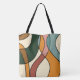 Carry your essentials in style with this original abstract tote bag from the "Serene Savanna Gentle" collection by Cor de Flor Design. This shoulder bag features a sophisticated composition of organic flowing lines and a warm, curated earthy palette of terracotta, deep forest green, dusty teal, and ochre.