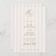 Featuring a beautifully hand-painted watercolor shell at the top, this unique monogram can be customised with the initials of the bride and groom, adding a touch of intimacy and elegance to your wedding stationery. Whimsical handwritten font elements add a personal and playful touch to your announcement, complementing the minimalist design and inviting your guests with warmth and style. Emphasizing simplicity and elegance, the overall layout is clean and uncluttered, allowing the watercolor shell and your wedding details to shine. This minimalist approach ensures that your invitation is both stylish and timeless. The text is presented in a classic taupe, providing a sophisticated contrast against the soft striped background. However, you can easily change the font colour to match your wedding theme, ensuring a cohesive look throughout your stationery.