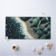 Serene Shores: This stunning top-down illustration captures the harmony of land and sea, featuring waves gently breaking on sandy beaches with lush green mountains in the background. Rendered in soothing shades of dark blue-green, the artwork evokes a sense of tranquility and balance. The intricate detail of the ocean’s patterns meeting the shore, paired with the trees lining the water’s edge, enhances the peaceful atmosphere. Created in a woodcut print style with simple lines and a flat design, the piece is reminiscent of hand-drawn animation, offering a timeless, serene depiction of nature’s beauty.