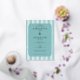 This wedding invitation features a modern and minimalist design with a rectangular layout framed by alternating white and teal blue stripes. The central portion is filled with a solid teal background, bordered by an octagonal frame that adds depth to the composition. The elegant serif typography enhances the formal yet inviting tone, while the clean lines and cool colour palette create a serene and sophisticated atmosphere. Perfect for couples seeking a stylish and straightforward invitation, this design emphasizes clarity and simplicity, making it ideal for contemporary weddings.