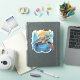 The stick looks amazing. Unfortunately, it would not stick on our suitcase as it was textured. When we found a non-textured (smooth) suitcase, the sticker stuck and looks great. The printing looked awesome.