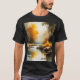 Breathtaking fall watercolor painting of a serene river surrounded by golden orange and red autumn foliage. The soft brushstrokes and tranquil atmosphere depicts a river surrounded by vibrant trees in autumn.