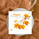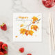 Elevate your Thanksgiving table setting with these elegant, customisable paper napkins. The design features a warm autumnal theme, showcasing a branch adorned with vibrant orange and yellow maple leaves that appear to be gently falling, perfectly capturing the essence of the season. At the centre, the beautifully scripted text “Happy Thanksgiving” is displayed in a flowing, cursive font that exudes celebration and gratitude.