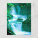 Postcard in a series of cascading waterfalls over granite boulders, surrounded by green vines - digitally enhanced photography