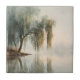 Ceramic Tile - Calming watercolor willow tree with soft green foliage and peaceful lake reflection. Ideal for nature lovers, mindfulness seekers, and those who love tranquil, relaxing scenery.