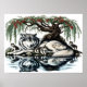 Serene Wolf Family Oasis in Idyllic Nature16x12 Poster
