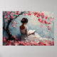 Serene Woman Reading Under Cherry Blossoms Poster