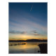 A jet's contrail points to a peaceful scene of a Hudson River sunset.
