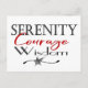 Red and black typography graphic features the three basic tenets of the Serenity Prayer.